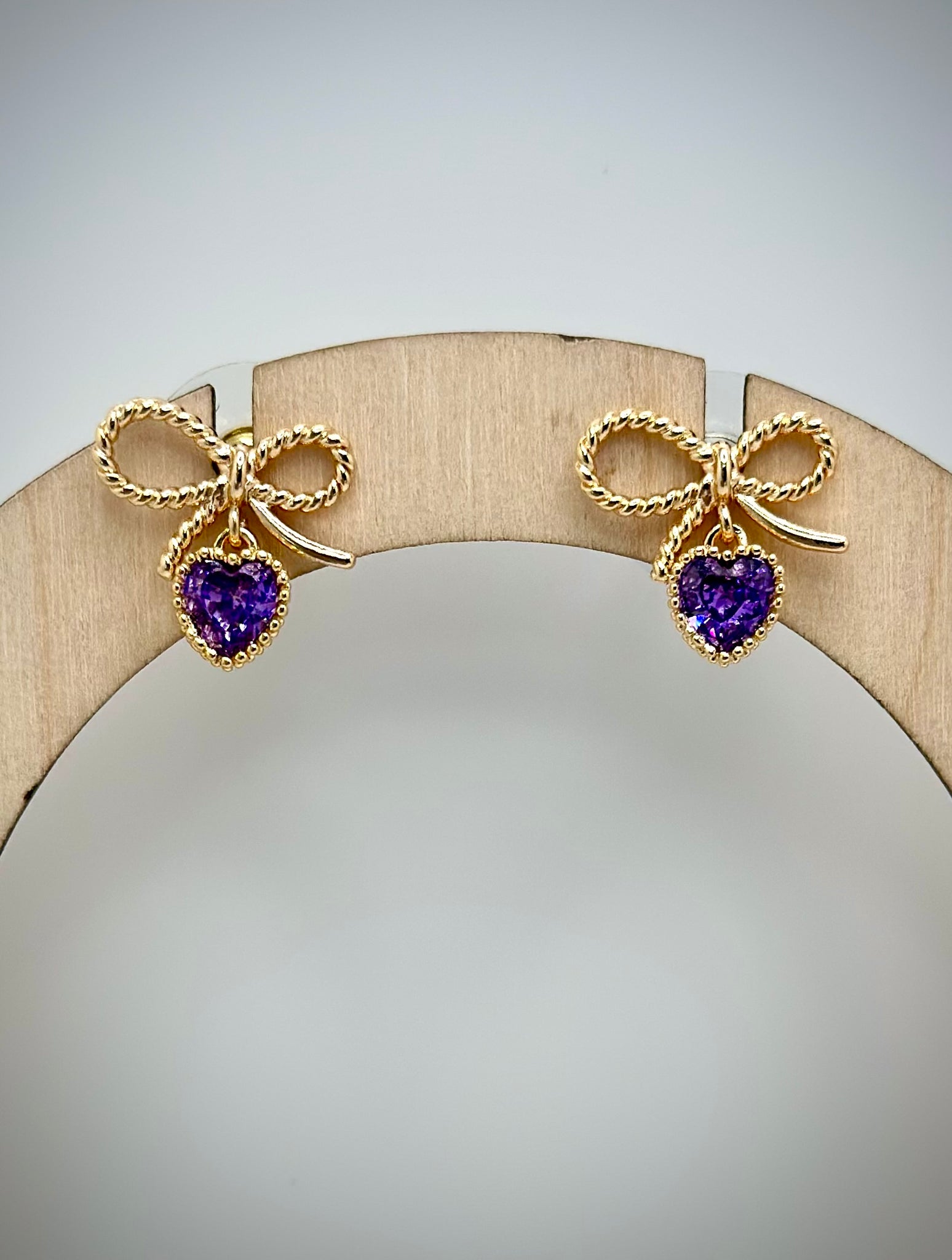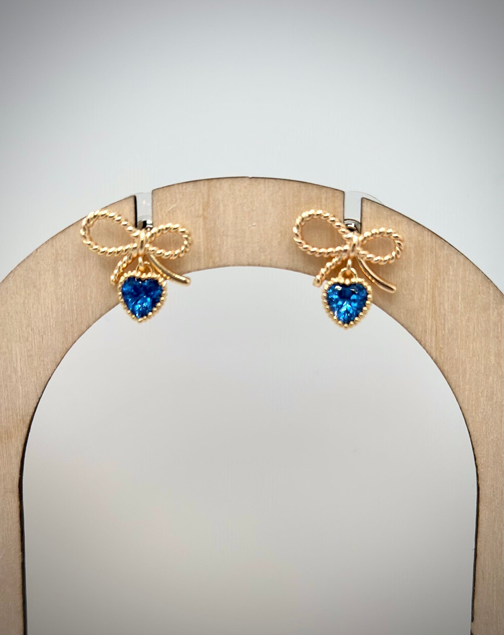 Bow & Heart Gem Gold Stud